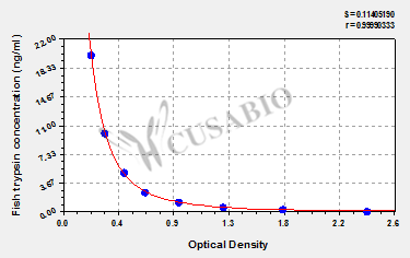 To assess the linearity of the assay, samples were spiked with high concentrations of fish trypsin in various matrices and diluted with the Sample Diluent to produce samples with values within the dynamic range of the assay.