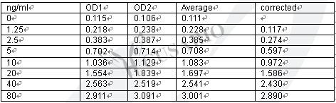 檢測范圍:1.25 ng/mL-80 ng/mL