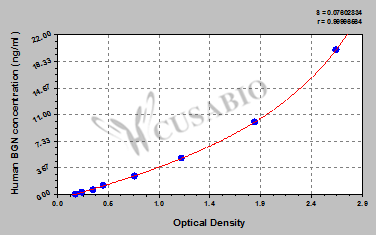 To assess the linearity of the assay, samples were spiked with high concentrations of human BGN in various matrices and diluted with the Sample Diluent to produce samples with values within the dynamic range of the assay. Sample Serum(n=4) 1:5 Average % 89 Range % 84-93 1:10 Average % 98 Range % 84-102 1:20 Average % 84 Range % 80-88 1:40 Average % 95 Range % 90-100 -