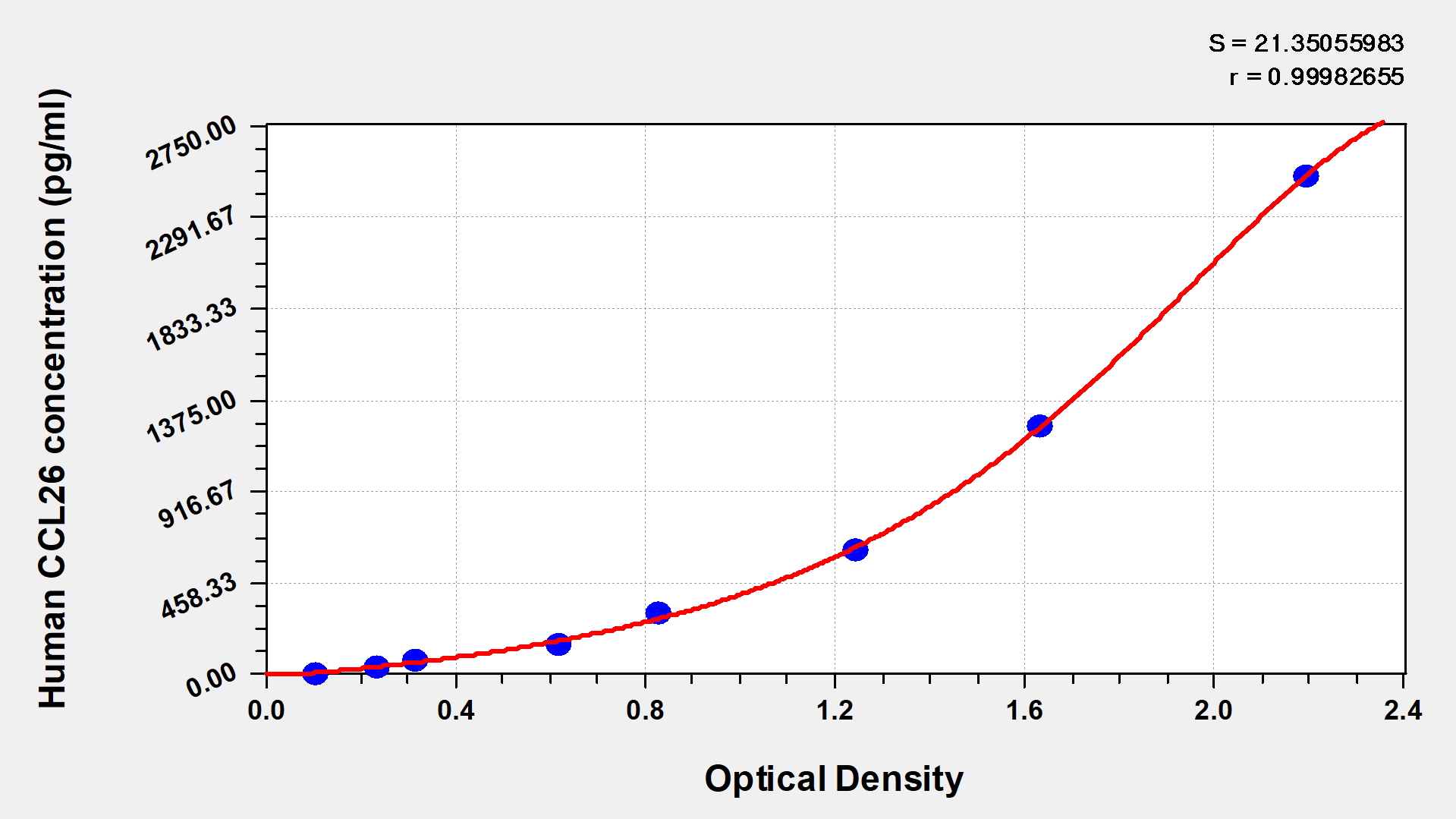 To assess the linearity of the assay, samples were spiked with high concentrations of human CCL26 in various matrices and diluted with the Sample Diluent to produce samples with values within the dynamic range of the assay.
