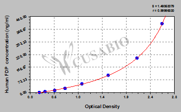To assess the linearity of the assay, samples were spiked with high concentrations of human FDP in various matrices and diluted with the Sample Diluent to produce samples with values within the dynamic range of the assay. Sample Serum(n=4) 1:1 Average % 99 Range % 94-107 1:2 Average % 91 Range % 87-96 1:4 Average % 95 Range % 90-100 1:8 Average % 84 Range % 80-88 -