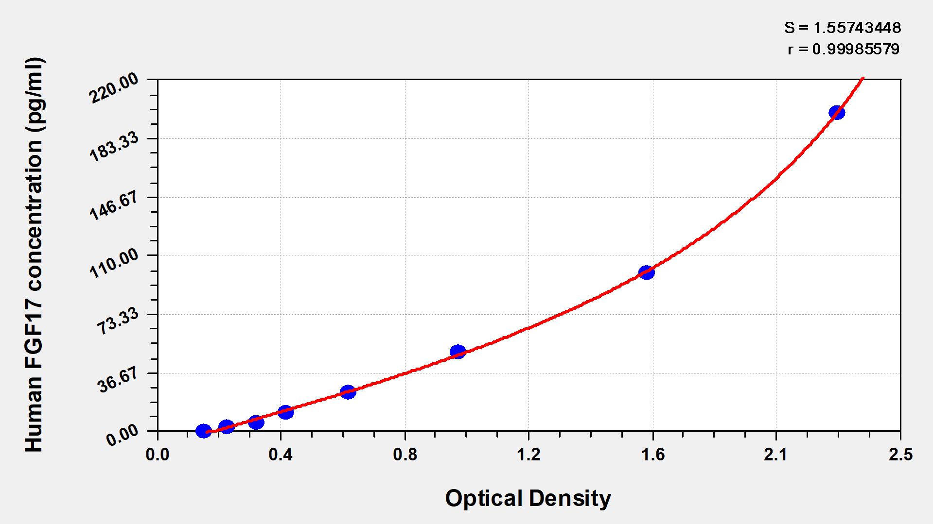 To assess the linearity of the assay, samples were spiked with high concentrations of human FGF17 in various matrices and diluted with the Sample Diluent to produce samples with values within the dynamic range of the assay.