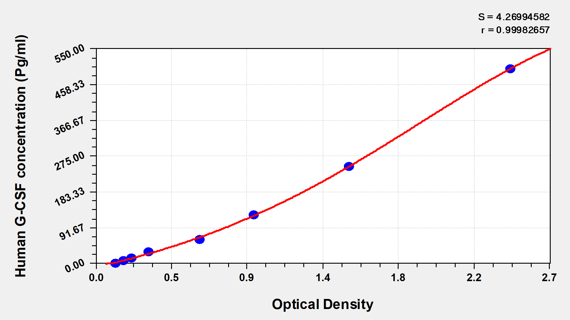 To assess the linearity of the assay, samples were spiked with high concentrations of human G-CSF in various matrices and diluted with the Sample Diluent to produce samples with values within the dynamic range of the assay.