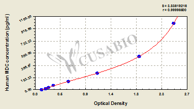 To assess the linearity of the assay, samples were spiked with high concentrations of human MDC in various matrices and diluted with the Sample Diluent to produce samples with values within the dynamic range of the assay. Sample Serum(n=4) 1:1 Average % 86 Range % 82-95 1:2 Average % 92 Range % 85-101 1:4 Average % 100 Range % 94-112 1:8 Average % 93 Range % 85-98 -