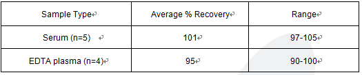The recovery of human PDGF-AB spiked to levels throughout the range of the assay in various matrices was evaluated. Samples were diluted prior to assay as directed in the Sample Preparation section.
