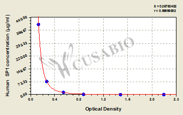To assess the linearity of the assay, samples were spiked with high concentrations of human SP1 in various matrices and diluted with the Sample Diluent to produce samples with values within the dynamic range of the assay.