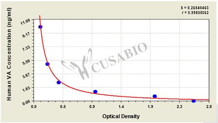 產品描述:人維生素A(VA)酶聯免疫試劑盒(CSB-E07889h)為競爭法ELISA試劑盒,定量檢測血清、血漿樣本中的VA含量。試劑盒檢測范圍為0.625 ng/mL-10 ng/mL,靈敏度為0.467 ng/mL。該產品可廣泛應用于科研領域,如膳食干預研究中VA代謝動態監測、疾病模型維生素缺乏狀態評估,或藥理學研究中營養補充劑的效果驗證本品僅用于科研,不用于臨床診斷,產品具體參數及操作步驟詳見產品說明書。