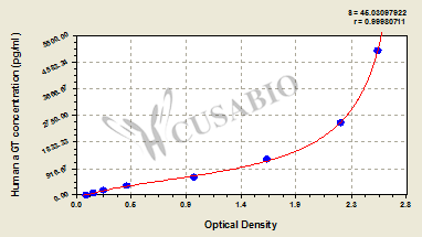 To assess the linearity of the assay, samples were spiked with high concentrations of human aGT in various matrices and diluted with the Sample Diluent to produce samples with values within the dynamic range of the assay. Sample Serum(n=4) 1:200 Average % 90 Range % 85-100 1:400 Average % 97 Range % 91-105 1:800 Average % 98 Range % 93-110 1:1600 Average % 93 Range % 85-105 -