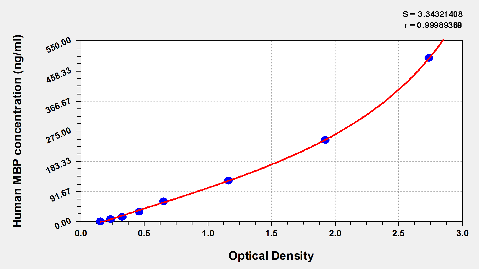 To assess the linearity of the assay, samples were spiked with high concentrations of human MBP in various matrices and diluted with the Sample Diluent to produce samples with values within the dynamic range of the assay.