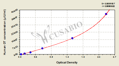 To assess the linearity of the assay, samples were spiked with high concentrations of human OT in various matrices and diluted with the Sample Diluent to produce samples with values within the dynamic range of the assay. Sample Serum(n=4) 1:1 Average % 89 Range % 85-96 1:2 Average % 95 Range % 91-99 1:4 Average % 98 Range % 92-103 1:8 Average % 93 Range % 87-98 -