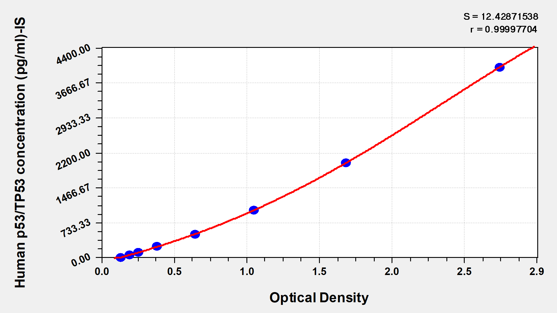 To assess the linearity of the assay, samples were spiked with high concentrations of human p53/TP53 in various matrices and diluted with the Sample Diluent to produce samples with values within the dynamic range of the assay.