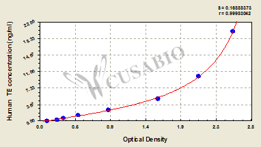 To assess the linearity of the assay, samples were spiked with high concentrations of human TE in various matrices and diluted with the Sample Diluent to produce samples with values within the dynamic range of the assay.