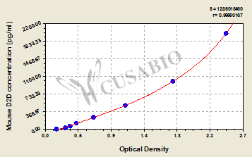 To assess the linearity of the assay, samples were spiked with high concentrations of mouse D2D in various matrices and diluted with the Sample Diluent to produce samples with values within the dynamic range of the assay. Sample Serum(n=4) 1:100 Average % 91 Range % 86-98 1:200 Average % 97 Range % 92-105 1:400 Average % 93 Range % 87-98 1:800 Average % 95 Range % 87-103 -
