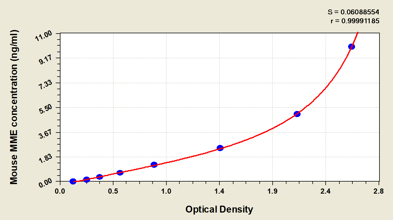 產(chǎn)品描述:小鼠腦啡肽酶(MME)酶聯(lián)免疫試劑盒(CSB-EL014653MO)為雙抗夾心法ELISA試劑盒,定量檢測血清、血漿,組織勻漿樣本中的MME含量。MME即膜金屬內(nèi)肽酶,在眾多生理過程中發(fā)揮重要作用。其在細(xì)胞信號轉(zhuǎn)導(dǎo)等方面有研究價值,參與調(diào)節(jié)多種生物活性肽的功能。它作為藥物靶點,在高血壓、心血管疾病等治療領(lǐng)域被深入研究,有望為相關(guān)疾病治療帶來新策略。試劑盒檢測范圍為0.156 ng/mL-10 ng/mL,靈敏度為0.039 ng/mL。適用于小鼠模型的基礎(chǔ)研究,例如阿爾茨海默病、神經(jīng)性疼痛等疾病機(jī)制探索,或藥理學(xué)實驗中MME表達(dá)水平變化的動態(tài)監(jiān)測。該產(chǎn)品為科研領(lǐng)域提供可靠工具,助力神經(jīng)生物學(xué)、病理生理學(xué)等相關(guān)研究中對MME功能的深入解析。本品僅用于科研,不用于臨床診斷,產(chǎn)品具體參數(shù)及操作步驟詳見產(chǎn)品說明書。
