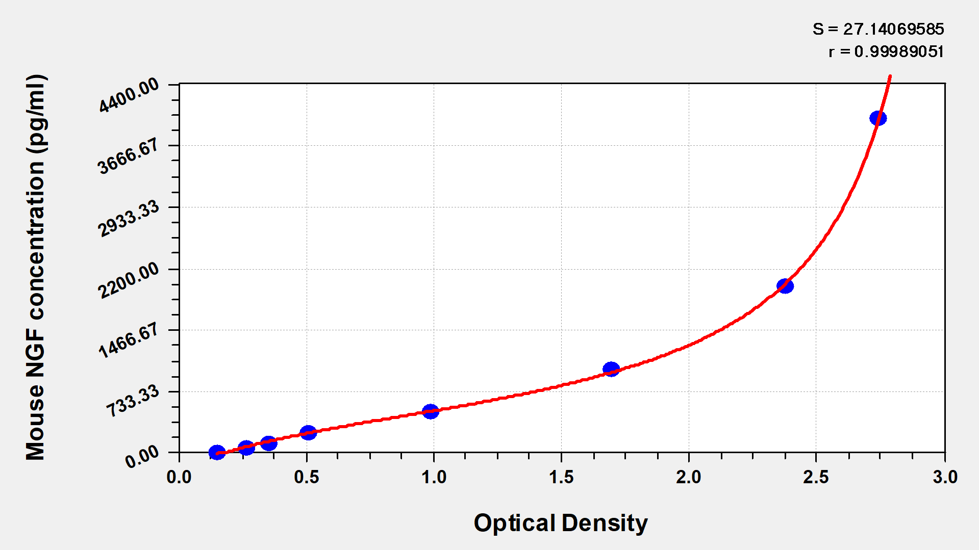 To assess the linearity of the assay, samples were spiked with high concentrations of mouse NGF in various matrices and diluted with the Sample Diluent to produce samples with values within the dynamic range of the assay.