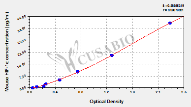 To assess the linearity of the assay, samples were spiked with high concentrations of mouse HIF-1α in various matrices and diluted with the Sample Diluent to produce samples with values within the dynamic range of the assay. Sample Serum(n=4) 1:100 Average % 100 Range % 95-107 1:200 Average % 89 Range % 83-98 1:400 Average % 91 Range % 87-95 1:800 Average % 96 Range % 90-101 -