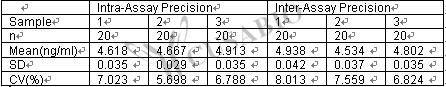Inter-assay Precision (Precision between assays):CV%<10%
