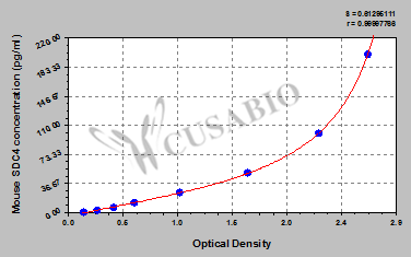 To assess the linearity of the assay, samples were spiked with high concentrations of mouse SDC4 in various matrices and diluted with the Sample Diluent to produce samples with values within the dynamic range of the assay. Sample Serum(n=4) 1:100 Average % 92 Range % 88-96 1:200 Average % 98 Range % 94-102 1:400 Average % 94 Range % 90-100 1:800 Average % 106 Range % 102-113 -