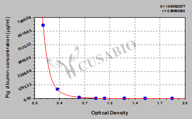 To assess the linearity of the assay, samples were spiked with high concentrations of pig albumin in various matrices and diluted with the Sample Diluent to produce samples with values within the dynamic range of the assay. Sample Serum(n=4) 1:100 Average % 90 Range % 87-95 1:200 Average % 93 Range % 90-100 1:400 Average % 90 Range % 85-93 1:800 Average % 89 Range % 82-96 -