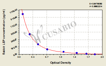 To assess the linearity of the assay, samples were spiked with high concentrations of rabbit LEP in various matrices and diluted with the Sample Diluent to produce samples with values within the dynamic range of the assay. Sample Serum(n=4) 1:100 Average % 96 Range % 91-99 1:200 Average % 93 Range % 88-97 1:400 Average % 85 Range % 80-89 1:800 Average % 90 Range % 84-96 -