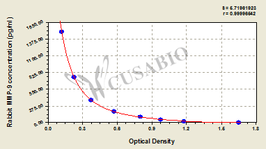 To assess the linearity of the assay, samples were spiked with high concentrations of rabbit MMP-9 in various matrices and diluted with the Sample Diluent to produce samples with values within the dynamic range of the assay. Sample Serum(n=4) 1:20 Average % 99 Range % 96-102 1:40 Average % 85 Range % 92-99 1:80 Average % 101 Range % 98-104 1:160 Average % 85 Range % 82-89 -