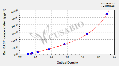 To assess the linearity of the assay, samples were spiked with high concentrations of rat CASP1 in various matrices and diluted with the Sample Diluent to produce samples with values within the dynamic range of the assay. Sample Serum(n=4) 1:1 Average % 91 Range % 88-93 1:2 Average % 95 Range % 90-102 1:4 Average % 97 Range % 94-101 1:8 Average % 94 Range % 91-98 -