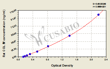 To assess the linearity of the assay, samples were spiked with high concentrations of rat COL Ⅳ in various matrices and diluted with the Sample Diluent to produce samples with values within the dynamic range of the assay. Sample Serum(n=4) 1:1 Average % 97 Range % 92-105 1:2 Average % 96 Range % 92-101 1:4 Average % 92 Range % 87-96 1:8 Average % 87 Range % 82-94 -