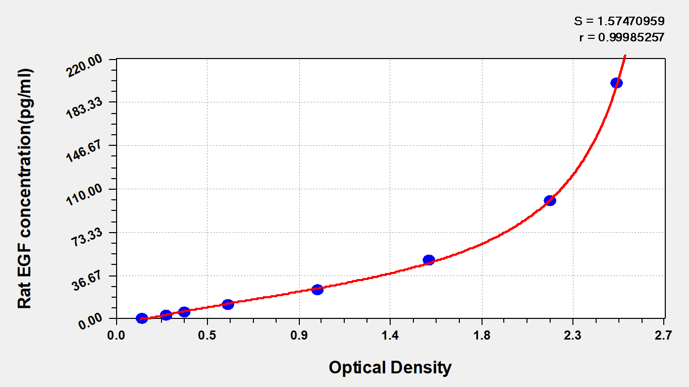 產品描述:大鼠表皮生長因子(EGF)酶聯免疫試劑盒(CSB-E08029r)為雙抗夾心法ELISA試劑盒,定量檢測血清、血漿、組織勻漿樣本中的EGF含量。EGF 即表皮生長因子,是一種廣泛存在于人體多種組織中的小分子多肽。它能與表皮生長因子受體結合,激活下游信號通路,參與細胞的增殖、分化和遷移等過程。目前在腫瘤、皮膚修復等領域研究較多,其研究有助于揭示疾病機制及開發新療法。試劑盒檢測范圍為3.12 pg/mL-200 pg/mL,適用于大鼠疾病模型研究、藥物干預效果評估或基礎科研中EGF動態變化的定量分析,支持科研人員高效開展與皮膚損傷修復、腫瘤微環境或炎癥調控相關的分子機制研究,為探索EGF在大鼠生理及病理過程中的作用提供可靠工具。本品僅用于科研,不用于臨床診斷,產品具體參數及操作步驟詳見產品說明書。