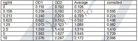 - Two vials lyophilized standard --Dilute a bottle of the standard at dilution series, read the OD values, and then draw a standard curve.