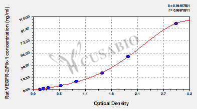 The recovery of rat VEGFR-2/Flk-1 spiked to levels throughout the range of the assay in various matrices was evaluated. Samples were diluted prior to assay as directed in the Sample Preparation section. Sample Type Average % Recovery Range Serum (n=5) 107 101-113 EDTA plasma (n=4) 94 90-99 -