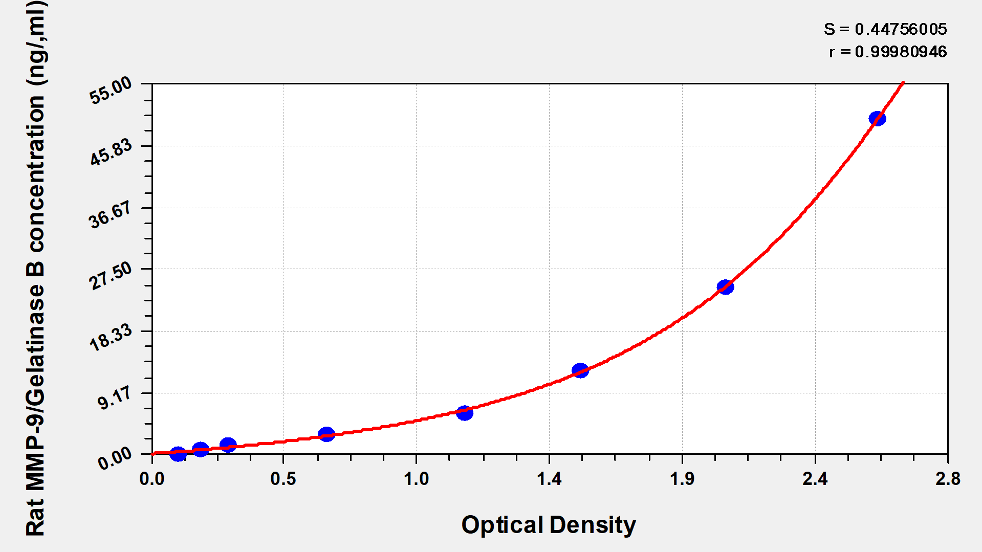 To assess the linearity of the assay, samples were spiked with high concentrations of rat MMP-9/Gelatinase?B in various matrices and diluted with the Sample Diluent to produce samples with values within the dynamic range of the assay.