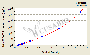 To assess the linearity of the assay, samples were spiked with high concentrations of rat sPECAM-1 in various matrices and diluted with the Sample Diluent to produce samples with values within the dynamic range of the assay. Sample Serum(n=4) 1:1 Average % 92 Range % 86-95 1:2 Average % 102 Range % 97-107 1:4 Average % 91 Range % 85-97 1:8 Average % 97 Range % 91-103 -