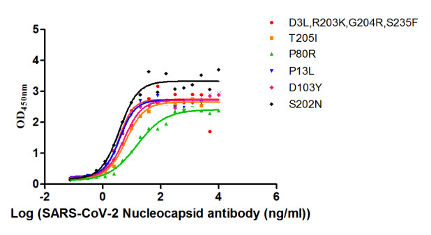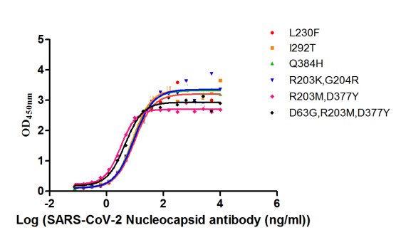The Binding Activity of SARS-CoV-2-N Antibody with SARS-CoV-2-N Activity: Measured by its binding ability in a functional ELISA. Immobilized SARS-CoV-2-N (CSB-YP3325GMY) at 2 μg/ml can bind SARS-CoV-2-N Antibody, the EC50 is 15.36 to 23.97 ng/ml.