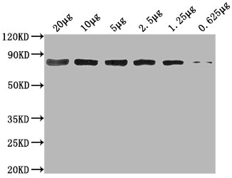 Positive WB detected in: Hela whole cell lysate at 20μg, 10μg, 5μg, 2.5μg, 1.25μg, 0.625μg