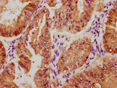IHC image of CSB-MA012719A0m diluted at 1:500 and staining in paraffin-embedded human appendix tissue performed on a Leica BondTM system. After dewaxing and hydration, antigen retrieval was mediated by high pressure in a citrate buffer (pH 6.0). Section was blocked with 10% normal goat serum 30min at 37°C Then primary antibody (1% BSA) was incubated at 4°C overnight. The primary is detected by a Goat anti-Mouse IgG labeled by HRP and visualized using 0.05% DAB.