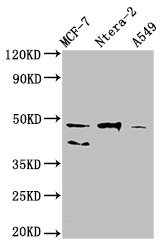 Positive WB detected in: MCF-7 whole cell lysate, Ntera-2 whole cell lysate, A549 whole cell lysate