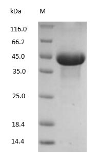 產品描述:Ovalbumin is a native protein with full length. This protein is purified from chicken egg white. Its purity was determined by SDS-PAGE and reached up to 95%. It is presented the mass molecule around 45 kDa visualized on the gel. It has been validated in ELISA, WB and SDS-PAGE applications.