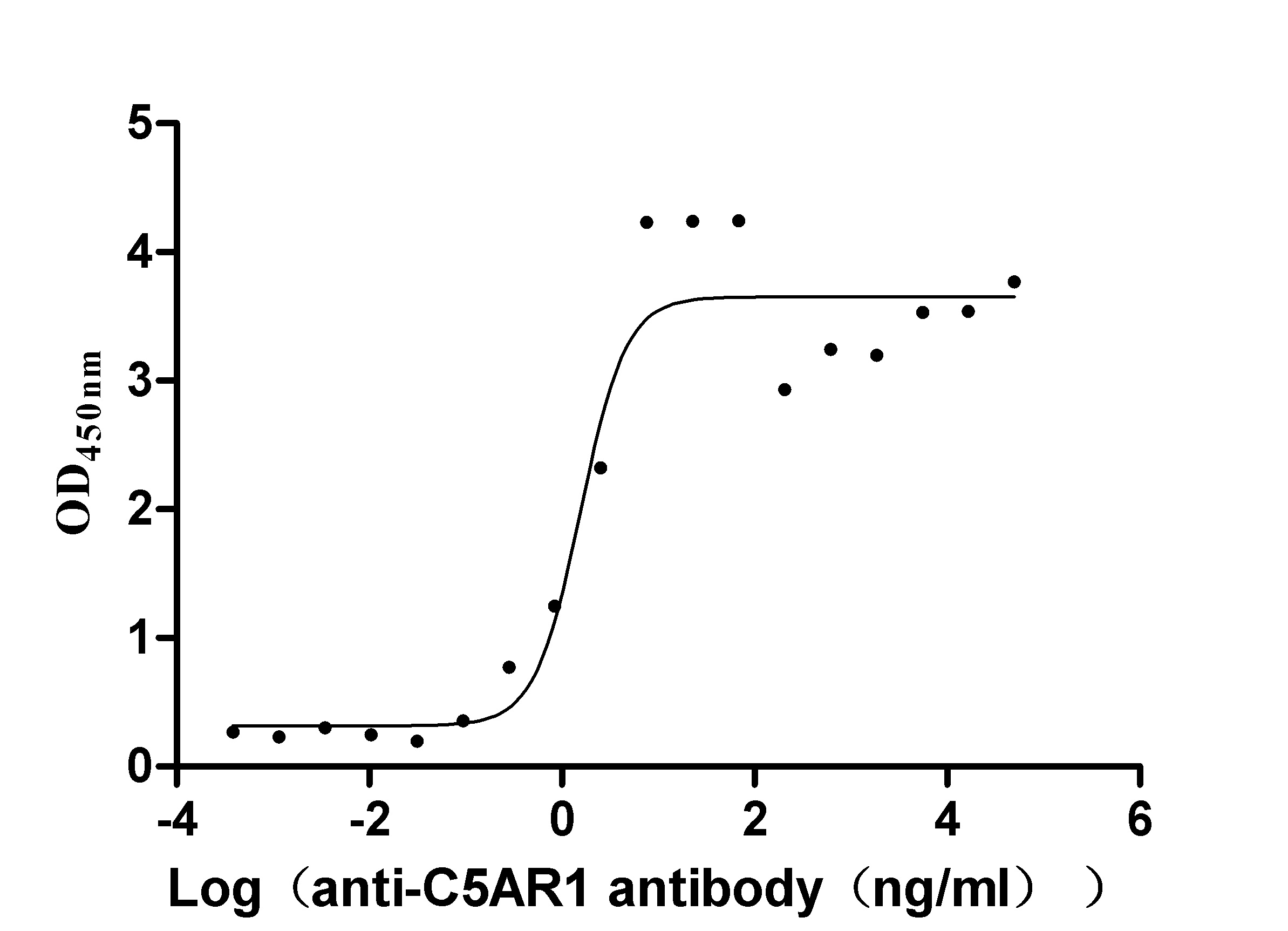 Measured by its binding ability in a functional ELISA. Immobilized human C5AR1 at 10 μg/ml can bind Anti-C5AR1 recombinant antibody (CSB-RA003996A0HU), the EC50 is 1.239-3.760 ng/mL. Biological Activity Assay -