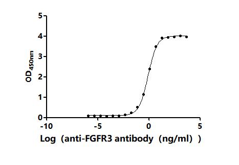 Measured by its binding ability in a functional ELISA. Immobilized Human FGFR3 at 2 μg/ml can bind Anti-FGFR3 recombinant antibody (CSB-RA008646MA1HU). The EC50 is 0.6767-0.8946 ng/mL. Biological Activity Assay -