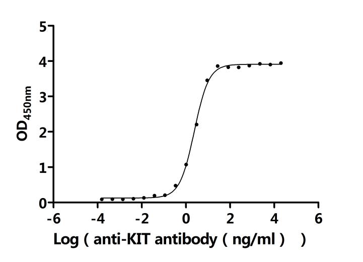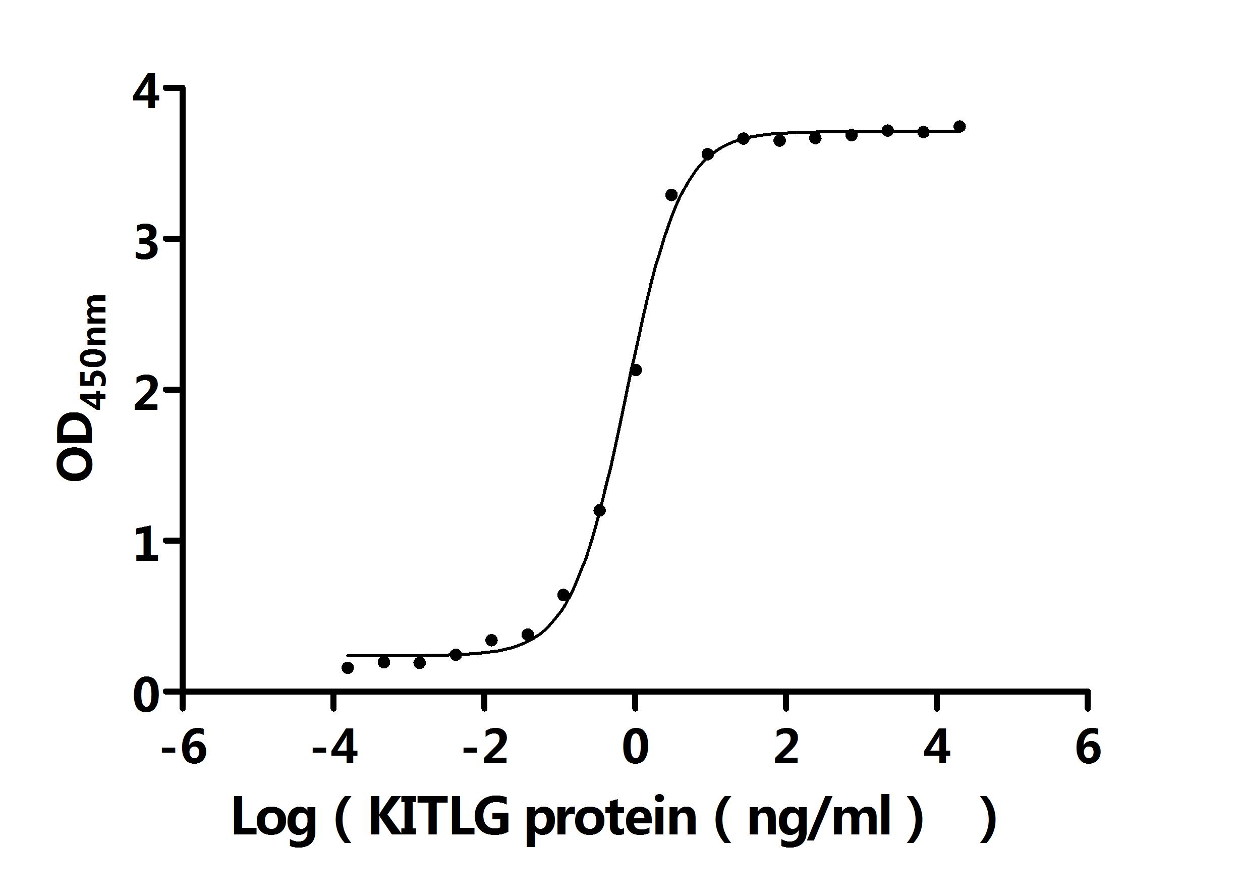 Measured by its binding ability in a functional ELISA. Immobilized Human KIT at 2 μg/ml can bind Human KITLG (CSB-MP002061HU1i9). The EC50 is 0.6921-0.8551 ng/mL. -