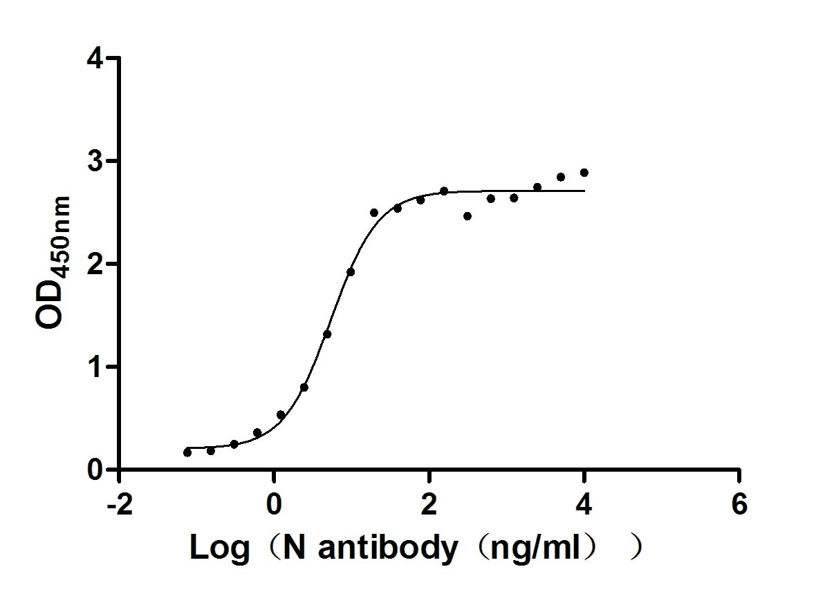 Measured by its binding ability in a functional ELISA. Immobilized N (CSB-EP3325GMY(M5)) at 2 μg/ml can bind N Recombinant Antibody(CSB-RA33255A1GMY), the EC50 of N Recombinant Antibody is 7.358-9.976 ng/ml. Biological Activity Assay