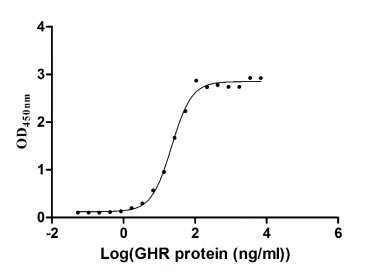 Measured by its binding ability in a functional ELISA. Immobilized GH1 at 1 μg/ml can bind human GHR(CSB-MP009411HU), the EC50 of the protein is 19.28-25.29 ng/ml. -