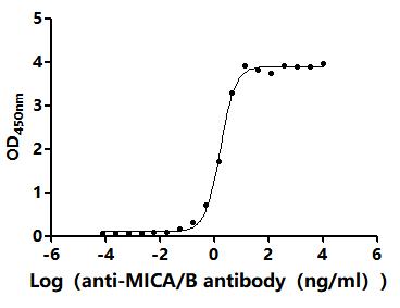 Measured by its binding ability in a functional ELISA.Immobilized Macaca fascicularis MICB at 2 μg/mL can bind Anti-MICA/B recombinant antibody (CSB-RA56059MA1HU). The EC50 is 1.578-1.831 ng/mL.