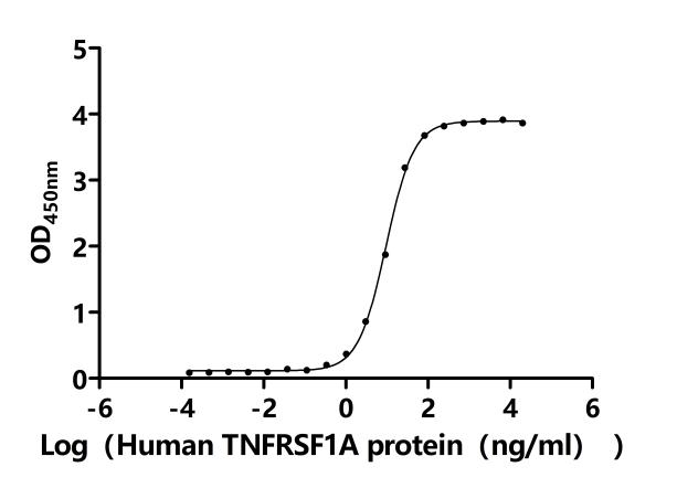 生物活性:Measured by its binding ability in a functional ELISA.Immobilized Macaca mulatta TNF at 2 μg/mL can bind Human TNFRSF1A(CSB-MP023977HU1). The EC50 is 9.112-9.954 ng/mL.