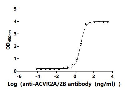 Measured by its binding ability in a functional ELISA. Immobilized Mouse Acvr2b at 2 μg/ml can bind Anti-ACVR2A&ACVR2B recombinant antibody (CSB-RA623829MA1HU). The EC50 is 3.560-4.235 ng/mL. Biological Activity Assay -