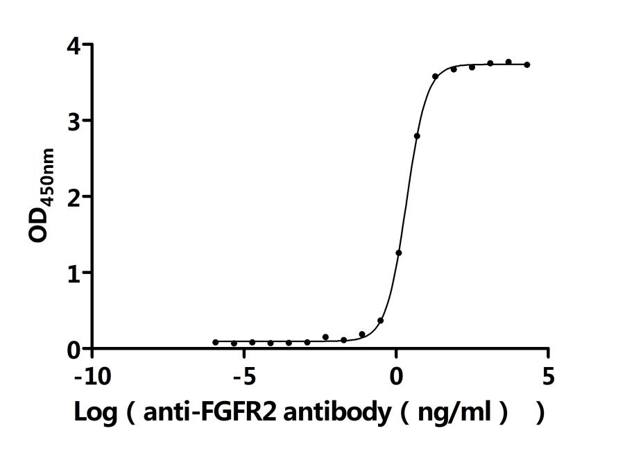 Measured by its binding ability in a functional ELISA. Immobilized Mouse FGFR2 at 2 μg/mL can bind Anti-FGFR2 recombinant antibody (CSB-RA008645MA1HU). The EC50 is 2.084-2.249 ng/mL.
