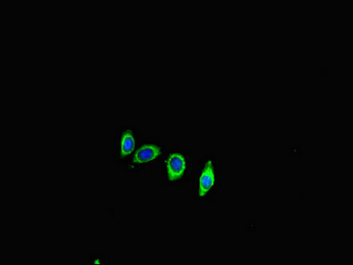 • Immunofluorescent analysis of HepG2 cells using CSB-PA866317LA01HU at dilution of 1:100 and Alexa Fluor 488-congugated AffiniPure Goat Anti-Rabbit IgG(H+L)