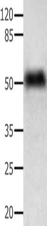 • Gel: 10%SDS-PAGE, Lysate: 40 μg, Lane: Mouse liver tissue, Primary antibody: CSB-PA552553(ACPP Antibody) at dilution 1/250, Secondary antibody: Goat anti rabbit IgG at 1/8000 dilution, Exposure time: 10 seconds