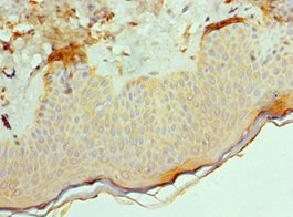 Immunohistochemistry of paraffin-embedded human skin tissue using CSB-PA001260ESR2HU at dilution of 1:100