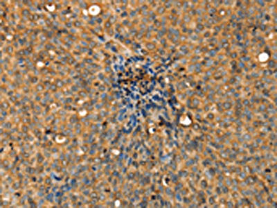 • The image on the left is immunohistochemistry of paraffin-embedded Human cervical cancer tissue using CSB-PA106602(ADCY3 Antibody) at dilution 1/30, on the right is treated with fusion protein. (Original magnification: ×200)